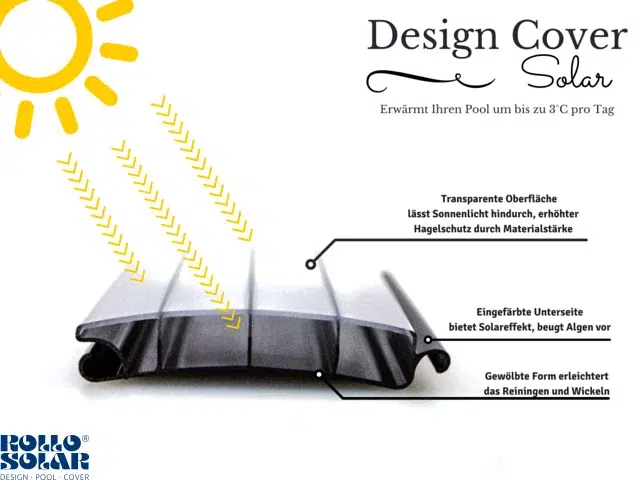 - The classic solar profile has a transparent upper side and a black underside, allowing the water temperature to be increased by up to 3 °C per day.