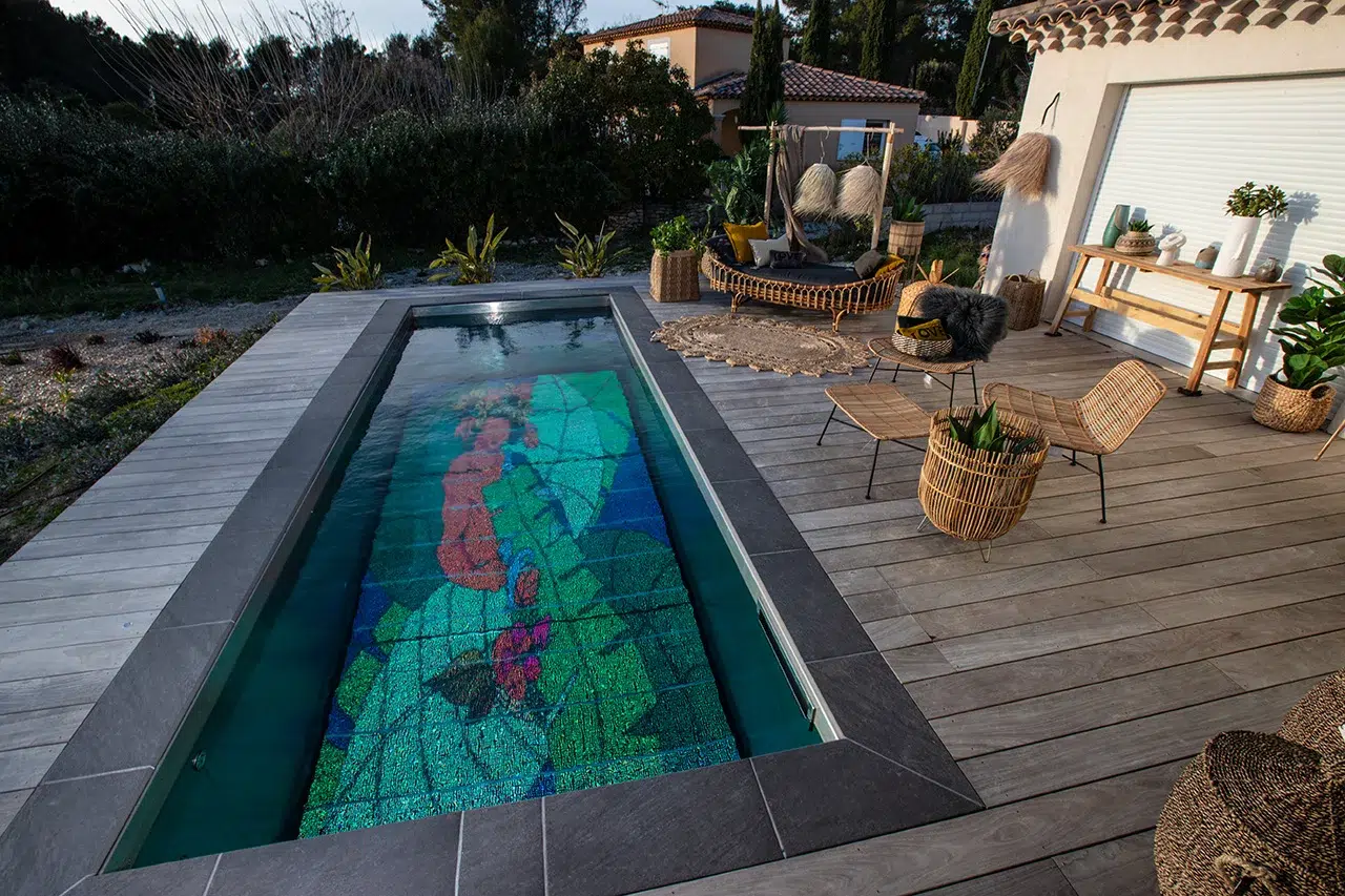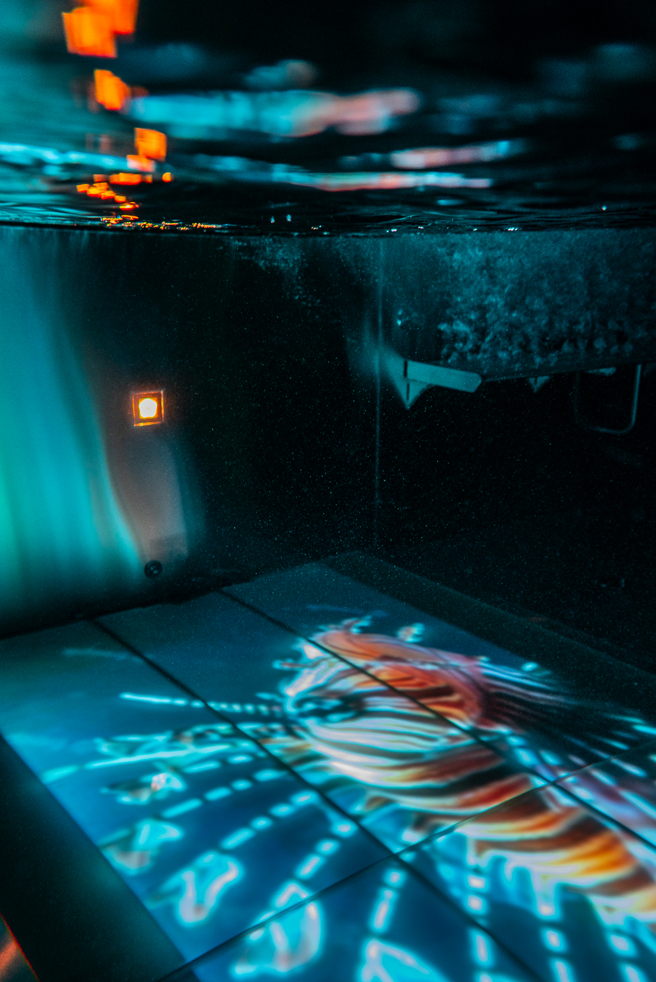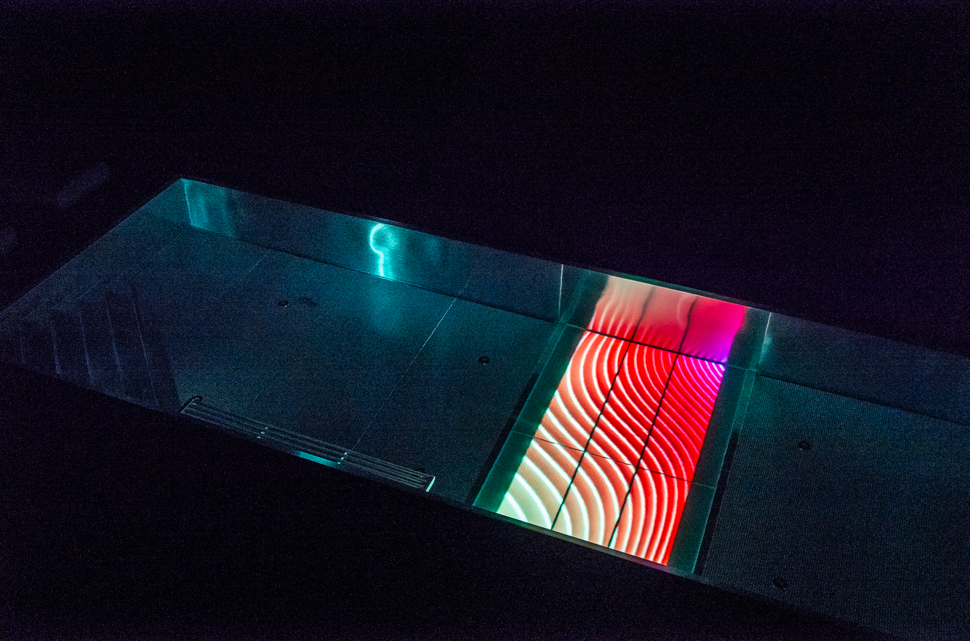 La «Piscina Multimedia» de Aqa Steel, en Perchtoldsdorf, cerca de Viena, recibió un premio. Con la «piscina multimedia» de Aqa Steel, las imágenes corren por el suelo de la piscina. Es de cristal y hace las veces de pantalla. Podrá contemplar la vida marina en movimiento, la emocionante final de la Liga de Campeones o simplemente ver imágenes mientras se baña y nada, en todo el fondo de la piscina.
